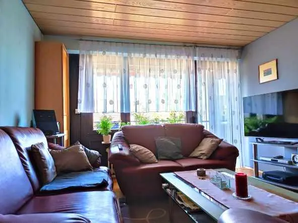 Die Wohn- und Schlafräume sind mit einem hochwertigen Laminatboden ausgestattet. Die Instandhaltung wurde regelmäßig durchgeführt: Fast alle Fenster wurden ca. 1995 erneuert, das große Glaselement im Wohnzimmer wurde erst ca. 2020 ausgetauscht. Die Einbauküche sowie das Badezimmer präsentieren sich baujahrstypisch gepflegt.